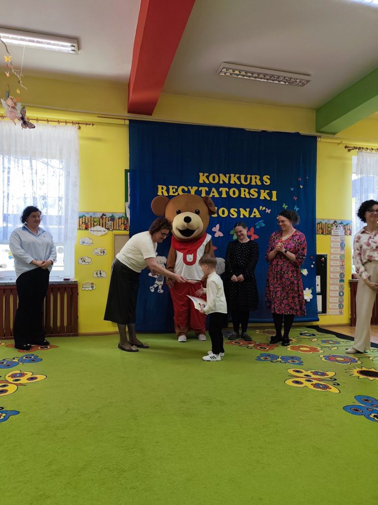 Nasze przedszkole dumnie reprezentowała dwójka dzieci z grupy „Biedronek” – Marcelinka oraz Konrad. Był to ich pierwszy występ poza murami naszego przedszkola, co z pewnością wiązało się z dużymi emocjami.
