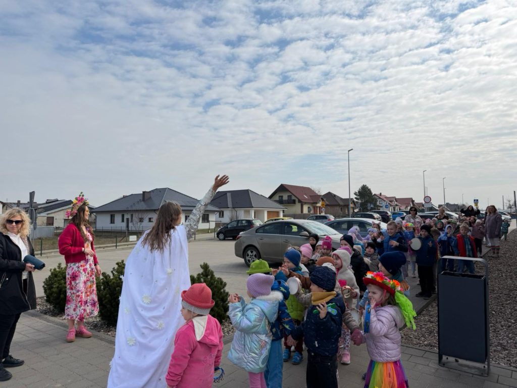 Kulminacyjnym punktem wydarzenia był uroczysty przemarsz, podczas którego wspólnie symbolicznie pożegnaliśmy Panią Zimę, robiąc miejsce dla nadchodzącej, kolorowej i ciepłej wiosny 🌼🌞